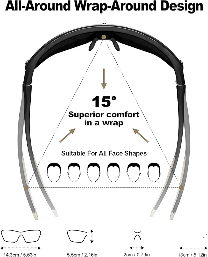 【高品質素材と耐久性】レンズは高品質の飛散防止素材で作られており、テンプル素材は軽量で耐久性があります。このデザインは、オートバイ、自転車、運転、ランニング、釣り、レース、スキー、登山、ハイキング、その他のアウトドア活動に最適です。