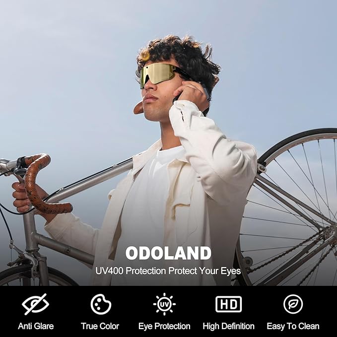 [Odoland] 偏光スポーツサングラス 磁気交換式 【グレーレンズ+ナイター向きレンズ+ケース付き】 UV400 紫外線カット スポーツメガネ メンズ レディース 釣り/ゴルフ/野球/自転車/登山/運転用