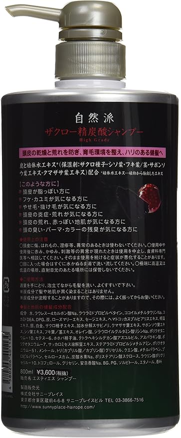 炭と5つの植体水エキス(植物から抽出したエキス)のパワーで、髪と地肌に輝きとうるおいを。自然派志向のシャンプー。頭皮の乾燥と荒れを防ぎ、毛穴の皮脂を除き、分泌の嫌な頭の臭いを防ぎます。育毛環境を整え、ハリのある健髪へ導きます。※植体水エキス→保湿剤:ザクロ種子・シソ葉・フキ葉/茎・サボンソウ葉エキス・クマザサ葉エキス配合 ▼このような方にオススメ ・頭皮が脂っぽい方に・フケ・カユミが気になる方に・やせ毛・抜け毛が気になる方に・頭皮の荒れ、赤っぽい地肌が気になる方に