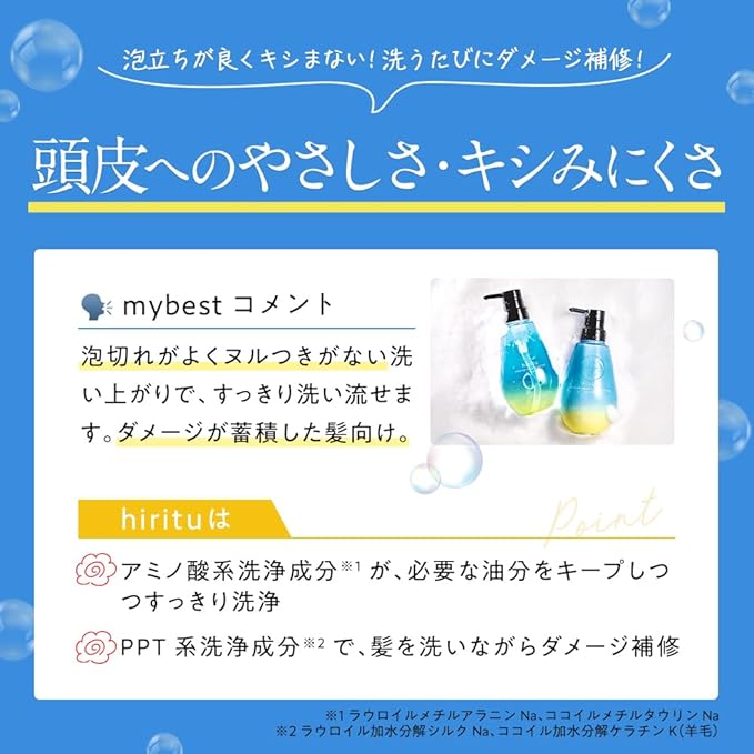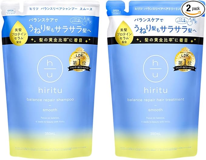 hiritu(ヒリツ) バランスリペアシャンプー ヘアトリートメント スムース 詰め替えセット バランスケアでうねり髪もサラサラ髪へ 美髪プロテインセラム バランスキープセラム PPT系/アミノ酸系洗浄成分 毛髪補修成分とキューティクルケア成分が髪の内部と外部にアプローチ ノンシリコン ペアー&ムスクの香り