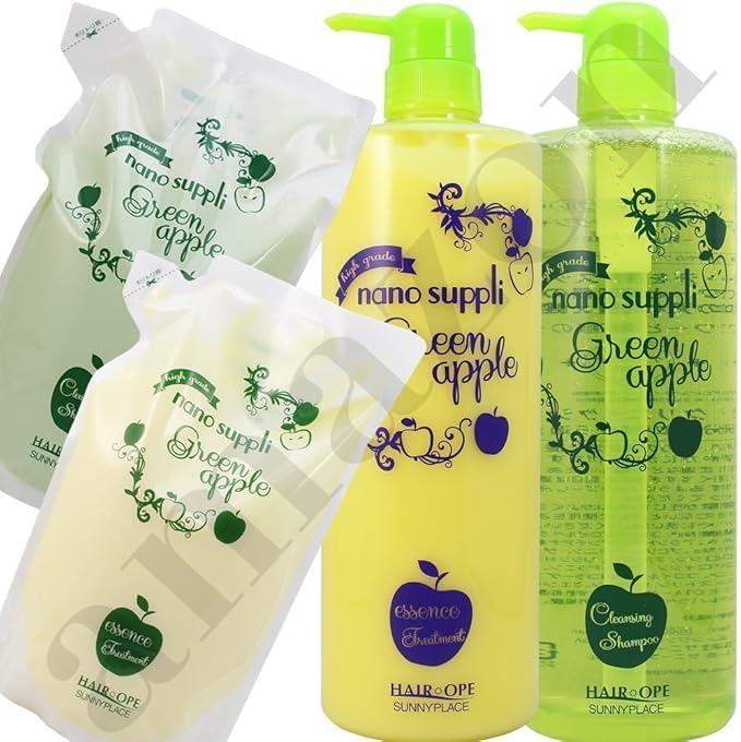 4点set グリーンアップル シャンプー1000+800&コンデ1000+800詰め替え サニープレイス ヘアオペ ナノサプリ セット