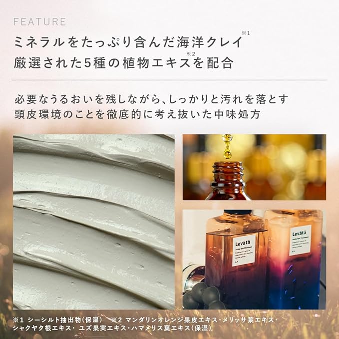 ・海洋クレイ*1&5種の植物エキス*2配合で、髪や頭皮を保湿しととのえる