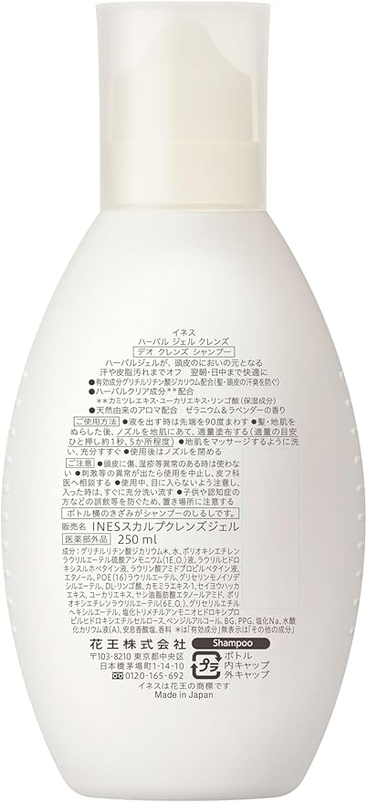 ines(イネス) ハーバル ジェル クレンズ シャンプー (INES スカルプクレンズジェル) 頭皮のニオイに 【医薬部外品】スカルプ美容 頭皮ケア 250ml ゼラニウム&ラベンダーの香り