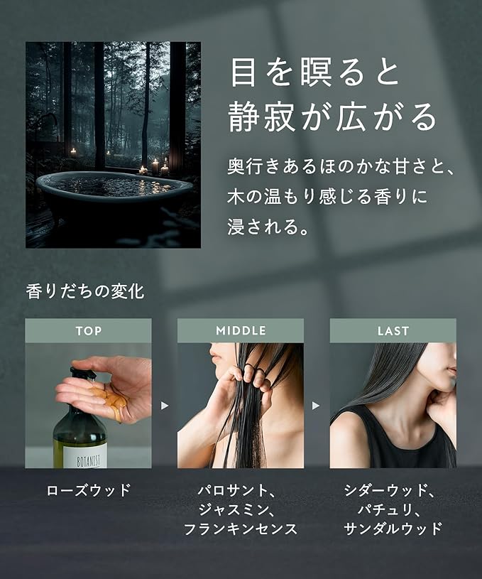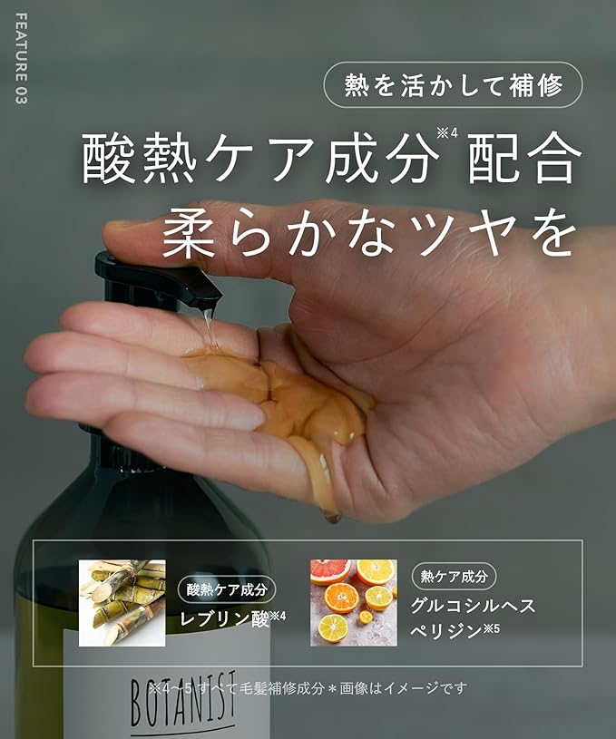 濃香 オイル と ダメージケア 成分 レブリン酸 グルコシルヘスペリジン 配合で、繰り返すパサつきを満たして閉じ込めます。