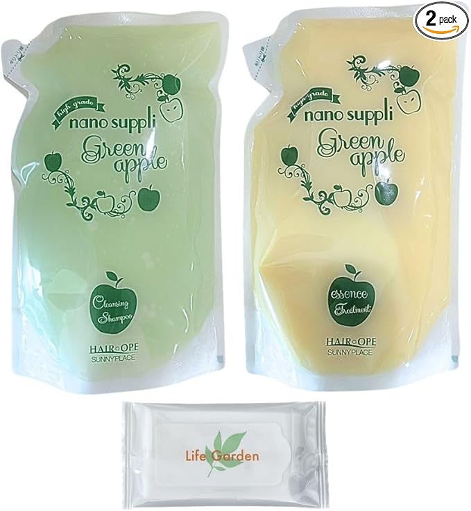 サニープレイス ナノサプリ クレンジングシャンプー&トリートメント グリーンアップル 各800mL+800mL レフィル 詰め替えセット オリジナルおまけ付き