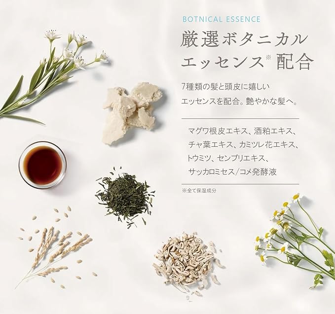 商品特長 髪のまとまりや艶、ハリが足りないあなたには、コメ、酒粕など日本由来の植物成分を配合したモイスチャータイプを。 しっとりとまとまった、艶のある髪に導きます。