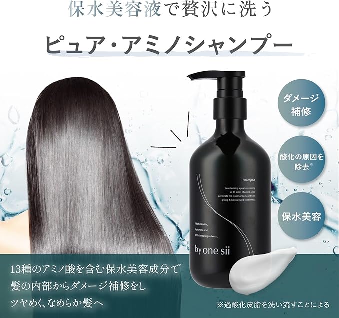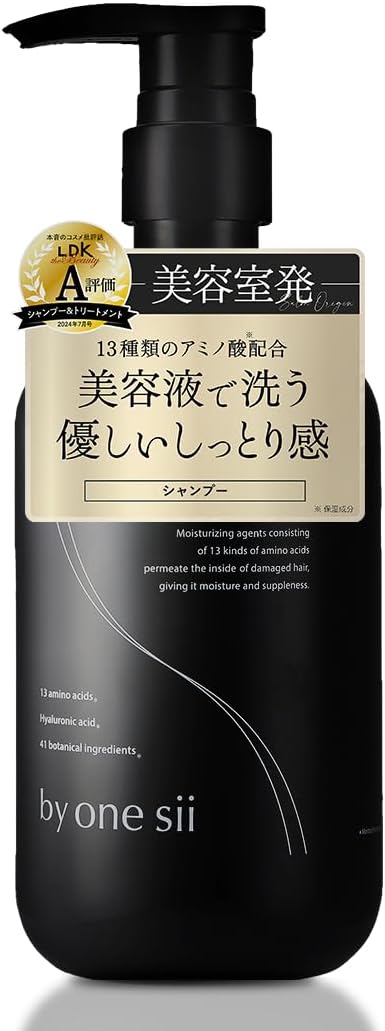 【美容室専売品】バイワンシー シャンプー 美容液で洗うシャンプー アミノ酸シャンプー ヘアケア オーガニック 保水美容液 41種類のボタニカル成分 高保湿 低刺激 新茶の香り 475ml