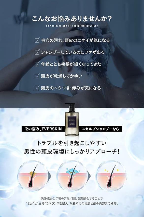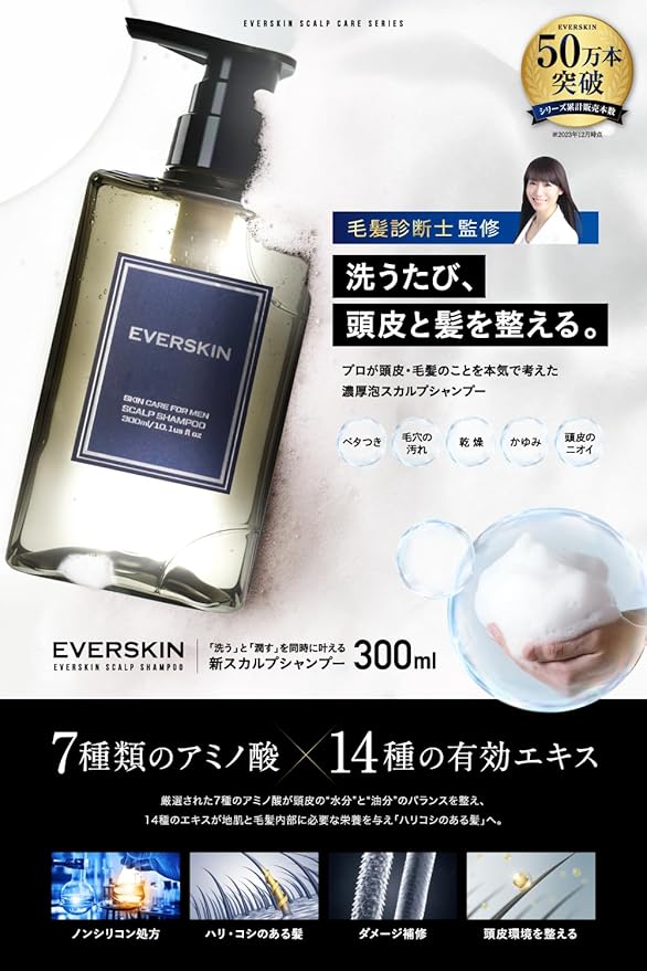 EVERSKIN 濃厚泡スカルプシャンプー メンズ アミノ酸シャンプー トリートメント 香水シャンプー オーガニック ノンシリコン ギフト プレゼント 300ml 日本製