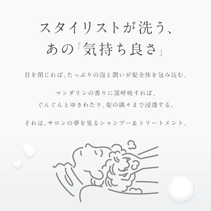 【「香り」の気持ちよさ】「スタイリストシリーズ」定番の<サロンドリームの香り>は、マンダリンがベースの思わず深呼吸をしたくなるような爽やかな香り。ラズベリーやミュゲがやさしく香り、男女共に好まれるサロンクオリティの上質な香りを表現しました。