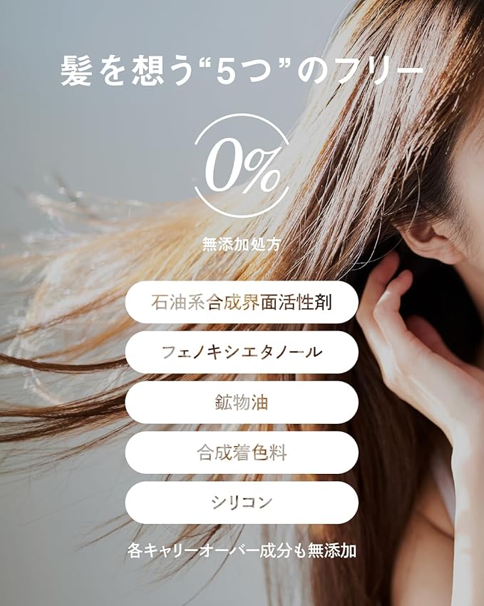 ✅【頭皮と髪を想う】5つのフリー処方です。(石油系合成界面活性剤/フェノキシエタノール/鉱物油/合成着色料/ シリコン/すべてキャリーオーバーも含む)