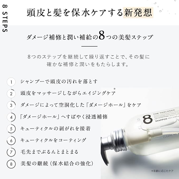 【関連ワード】 エイト ザ タラソ 8 THE THALASSO ヘアケア スタイリング シャンプー コンディショナー ヘアパック トリートメント くせ毛 エイジングケア クレンジング ノンシリコン サルフェートフリー パラペンフリー 無鉱物油 合成着色料不使用 石油系界面活性剤フリー 生ケラチン 美容室専売 サロン専売品 クオリティ 地肌ケア スカルプ レディース メンズ 男性 にも