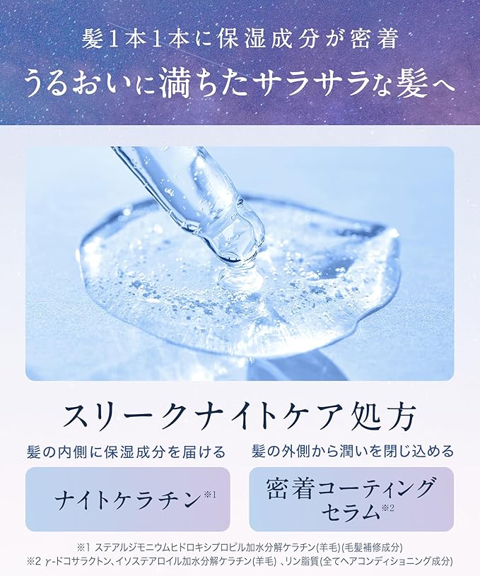 【翌朝に感動】夜の濃密集中補修で、翌朝扱いやすいうるツヤ髪に