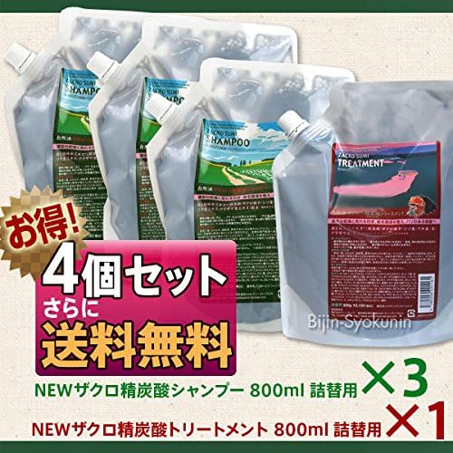 ザクロ精炭酸シャンプー800ml【詰替え用】【3個】+ 自然派 ザクロ精炭酸トリートメント 800g【詰替え】【1個】 【計4個セット】