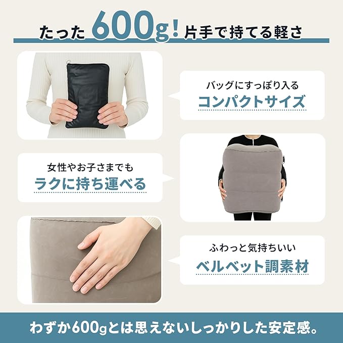 たった600g!バッグにすっぽり入るコンパクトさで女性やお子様でも楽に持ち運べます。