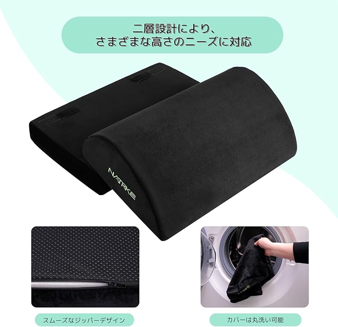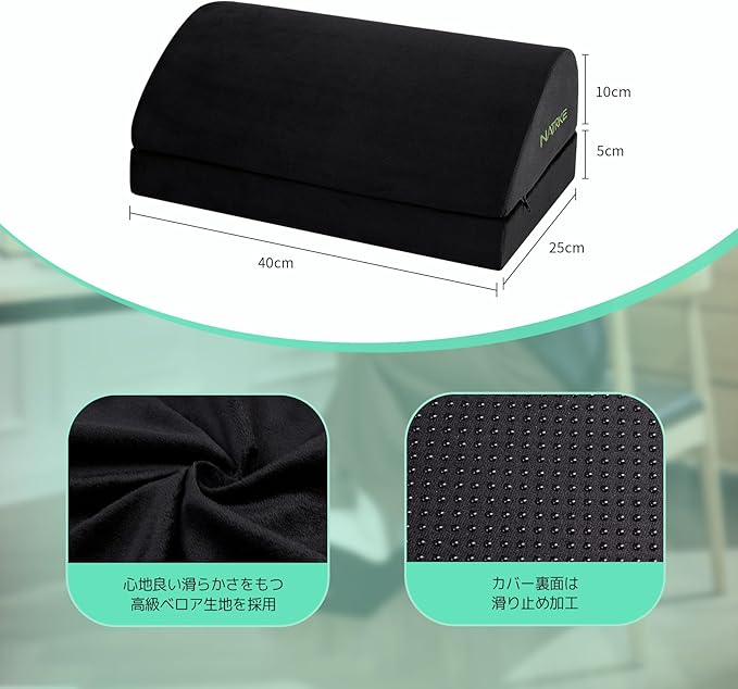 NATRKE 足枕 足置き 高さ2段階調節可能 多機能健康枕 家庭 オフィス 車用 テレワーク用 プレゼント 40CMx25CMx15CM ブラック