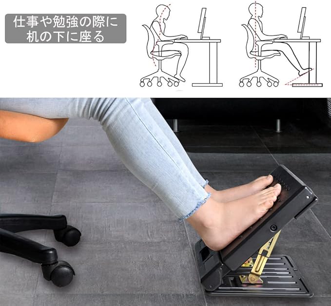 フットレスト 角度、高度調節可能 足置き 足らく 折り畳み 新幹線 オフィス用 ブラック