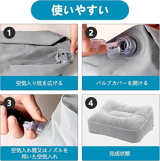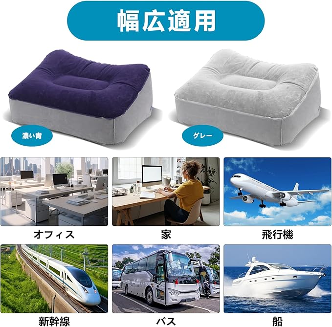MUFUSHAN フットレストエアクッション 足枕 足置き 車用/飛行機用/旅行用/ご自宅/オフィス リラックス 携帯便利 ソフトタッチ