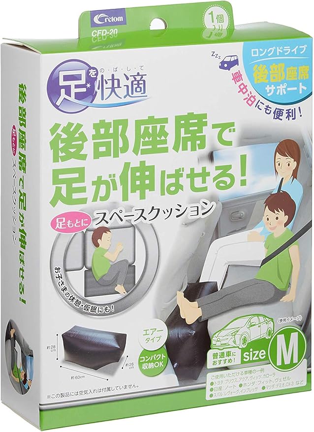 プリウスなど普通車の後部座席に置いて足を伸ばしてくつろげるエアータイプクッションです。