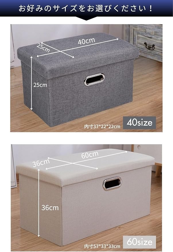 ✅【選べる6色/4サイズ展開】豊富な6色からお好きな色をお選びください。オレンジ/グレー/ネイビー/アイボリー/ベージュ/ブラウン。ベーシックでインテリアになじむ色合いを集めました。収納オットマンのサイズは4サイズ展開しました。椅子や収納ボックス、足置きとして幅広くお使いいただけます。日本の第三者機関での耐荷重検査実施済み。最大耐荷重127㎏ ご購入前にご確認ください ※素材や染色の工程上、製造ロットごとに色味が若干異なる場合があります。複数点ご購入時はご理解のうえご注文ください。