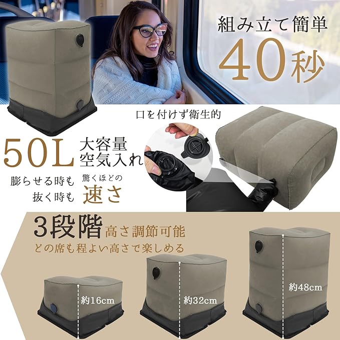 【40秒で膨らませる最新型エアー足枕】2025最新型エアーフットレストの収納袋は空気入れとして使用できる設計で、お子様でも40秒で簡単に膨らませます。ポンプ不要で息吹きも不要なので、口付けず衛生的!空気が抜けも手軽く、移動の車や飛行機の中でも隣に邪魔なくて使いやすいです。