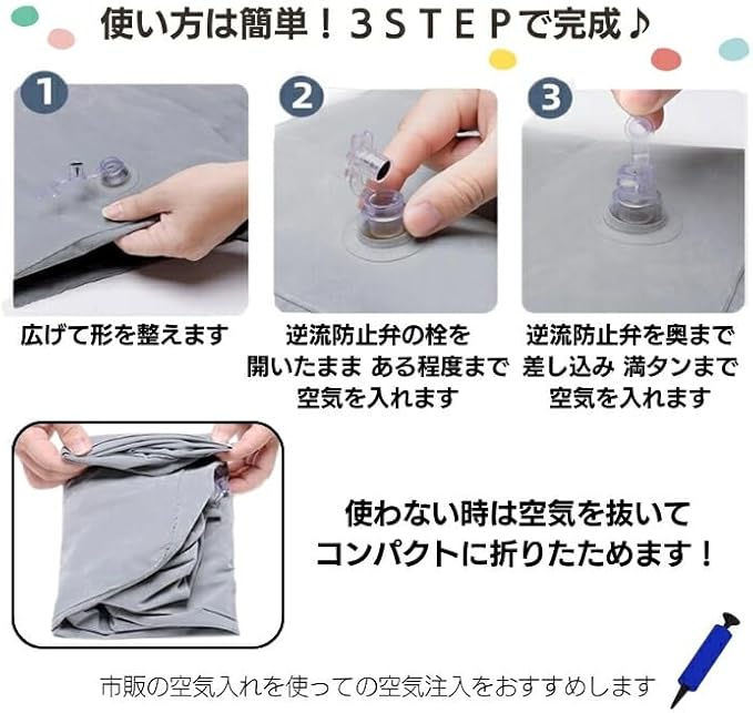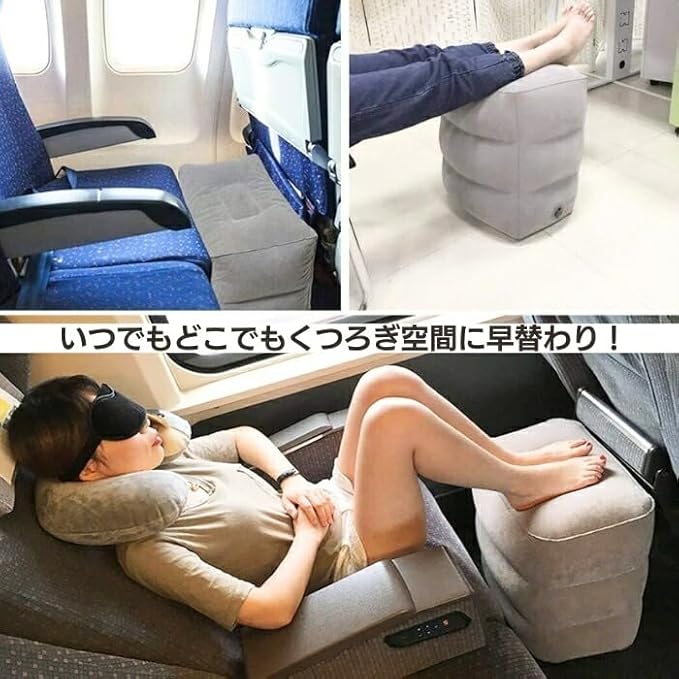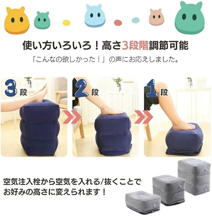 フットレスト 三段階 飛行機 バス 車 エアー 逆流防止弁付き オットマン クッション 旅行 足置き 持ち運び 機内 移動 車内 3段階 足枕 快眠 むくみ 安い トラベル 高さ調整 オフィス エコノミー症候群 [郵3]^bm1429^
