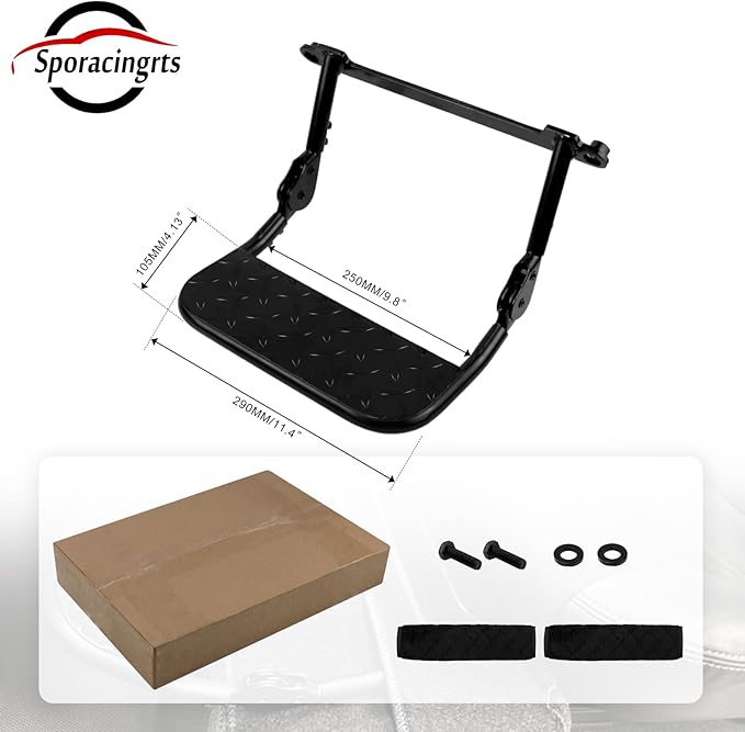 [簡単取付] 付属のボルトで固定でき、追加の穴あけは不要です。女性でも簡単に取り付け可能で、エンジンフードカバーを付けた状態でも取り付けできます。点検時にも邪魔にならず、エンジンフードの開閉もスムーズです。多段階調節のラチェット部分も頑丈で、安心して足を乗せられます。