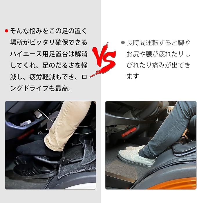 Sporacingrts 折畳み式助手席フットレスト 足置台 高さ角度調整可 カバー付き ハイエース レジアスエース 200系 S-GL1型~7型対応