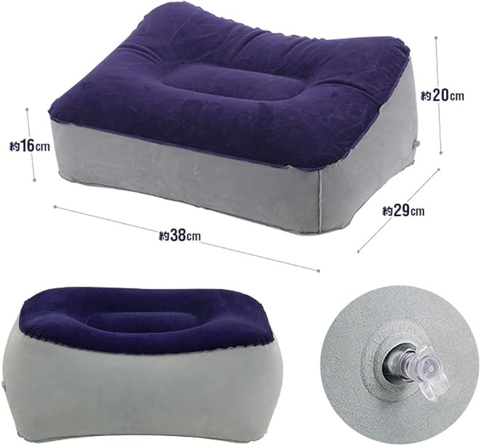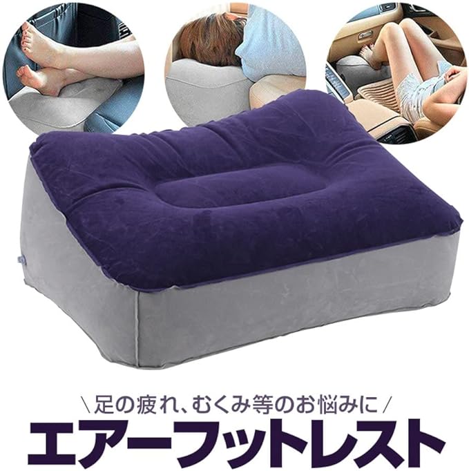 エアーフットレスト 足置き 足枕折りたたみ 肌触りの良いフロック加工 丈夫なPVC デスワーク/アウトドア/出張/旅行/ドライブ/飛行機/新幹線等で活躍 AFTRS38