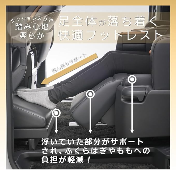 セカンドシート足元空間の快適性がアップし、足の疲れを軽減、リラックス空間に変わります。