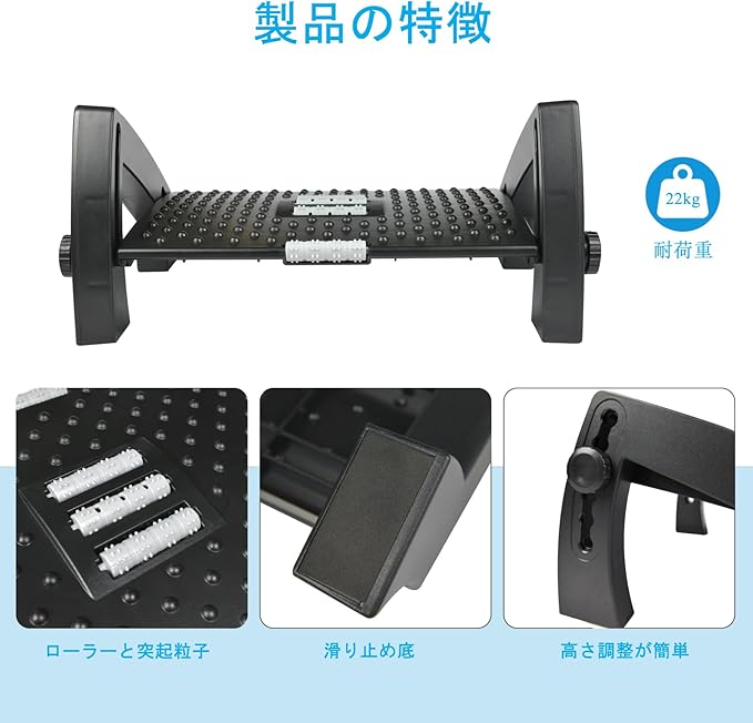 人間工学に基づいた設計:6段階角度調整、突起粒子とローラー、足に最も完璧なリラクゼーションと快適な位置を提供します。