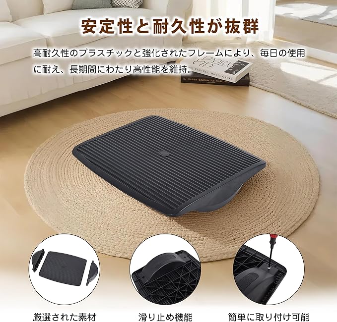 【サイズ】長さ45 幅30 高さ9.5cm。【重量】約1.6kg。【タイプ】円弧形脚人間工学に基づいたデザイン、安定性、耐久性が抜群、多様な使用シーン多用途:自宅、在宅勤務中、オフィス、通勤の合間、副運転席など様々なシーンでご利用いただけます。