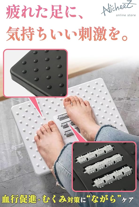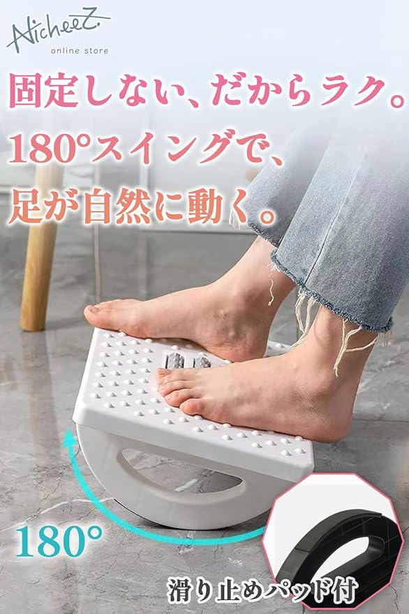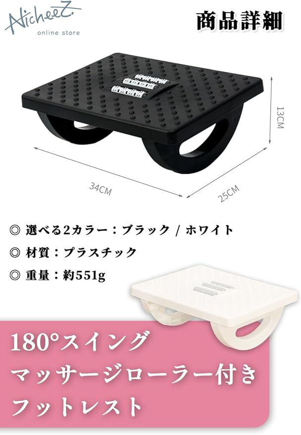 Nicheez フットレスト デスク下 足置き台 机の下 高さ 角度 調整 足ツボ マッサージローラー 180 スウィング 滑り止め (ブラック)