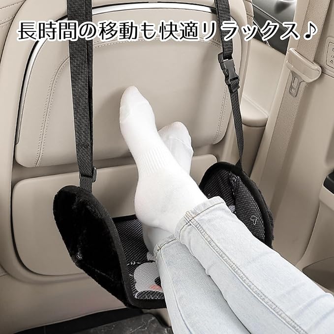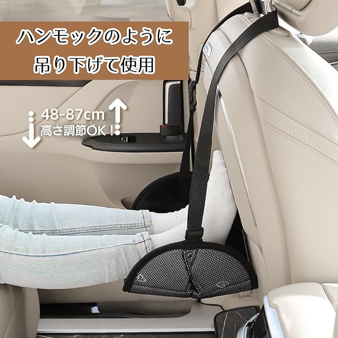 【車用フットレスト|快適なドライブをサポート】 長時間の移動で足が疲れる…そんな悩みを解消するのが、この車用フットレスト。足を自然な姿勢で支えて疲労を軽減します。設置は簡単、吊り下げるだけ!長距離移動の快適性をグッとアップ!