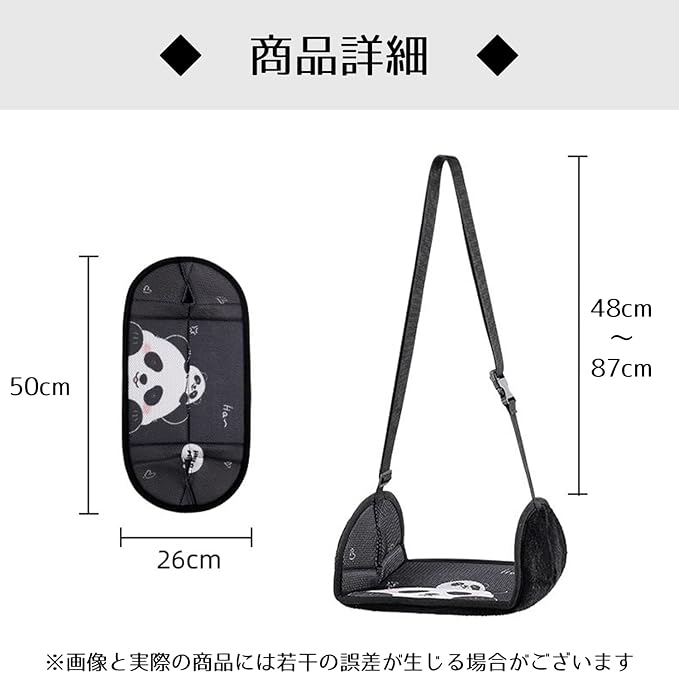 フットレスト 飛行機 車 子供 足置き ハンモック フットサポート 足掛け 足乗せ 機内 長距離移動 リラックス メッシュ ボア 両面 リバーシブル 車 バス 新幹線 旅行 パンダ アニマル footrest-01