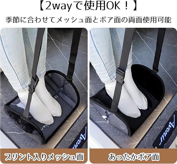 【オールシーズン対応|リバーシブル車用フットレスト】 季節に合わせて使い分け可能な両面仕様! 通気性に優れたメッシュ生地(春夏用)と、やわらかく暖かいボア生地(秋冬用)のリバーシブルデザインで、1年を通して快適な足元を実現します。車内のインテリアに馴染むシンプルデザイン。長距離ドライブや日常使いに最適な一品です。