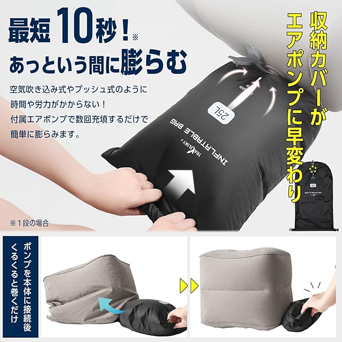 付属内容:クッション本体、空気入れ機能付き収納袋