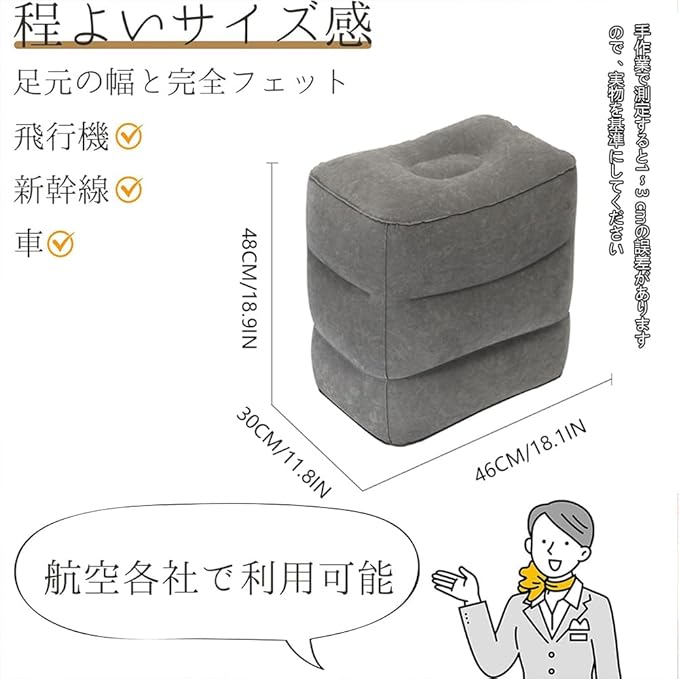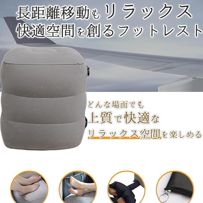 ✈【フットレスト 車用&適用場合】飛行機で平らに置くための子供用ベッドとして使用できます。 大人と子供を問わず使えるの飛行機のフットレスト。また、空港での飛行を待っている間、椅子として使用することもできます。 飛行機や電車、バスだけでなく、オフィスでの休憩時など、いろんなシーンで大活躍、足を伸ばすことによって足の疲れを防止に、 フットレストとしてだけでなく、お子様のおやすみスペースとしても。待ち時間に疲れた時に、しっかり空気を入れれば椅子としても使えます。