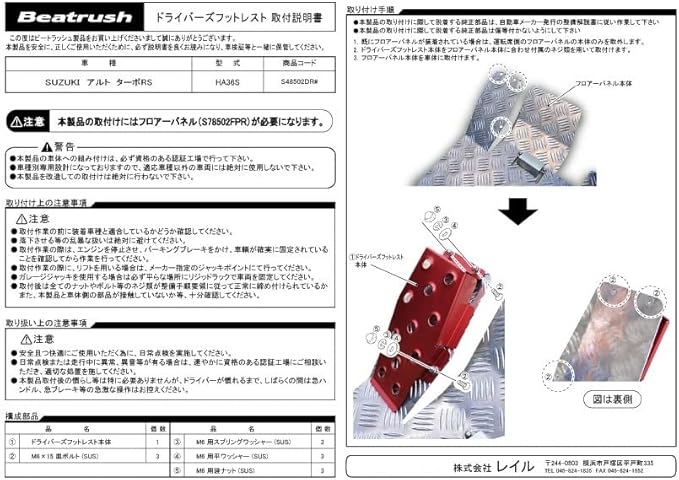 取り付けには Beatrush フロアーパネル(S78502FPR) が必要です