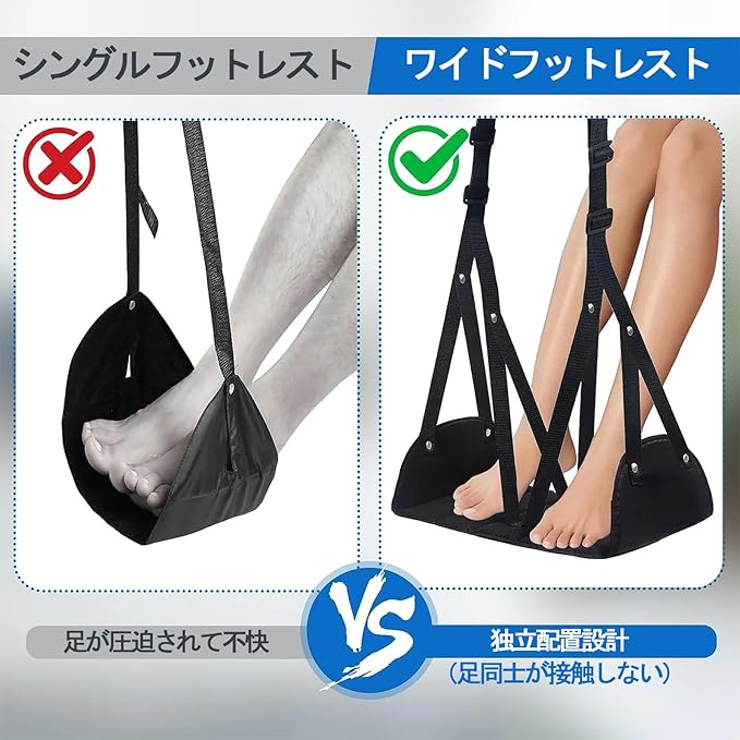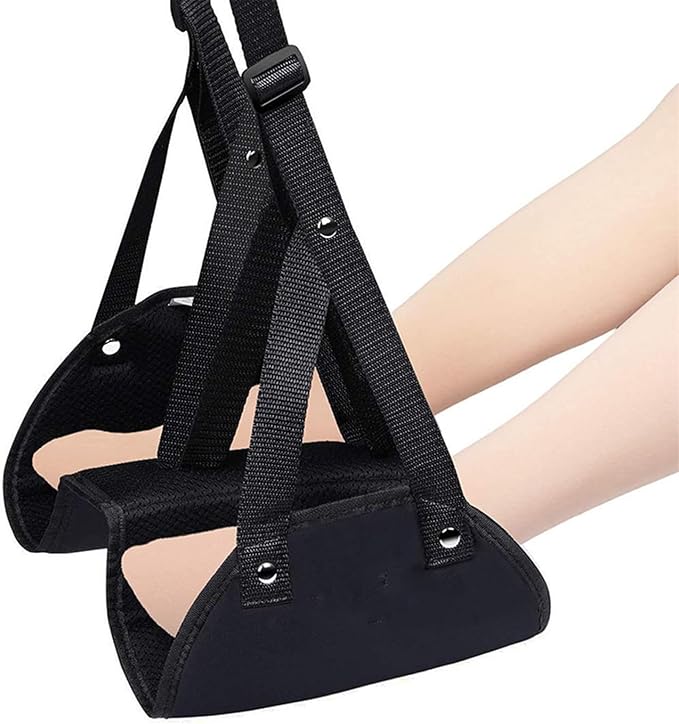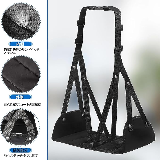 DENGUJD フットレスト ハンモック 足置き 旅行用 折りたたみ式 足むくみ予防 リラックスサポート 長距離移動 オフィス 車用 飛行機 夜行バス用 黒