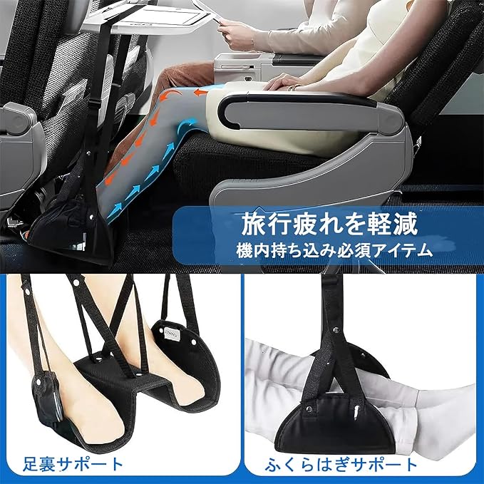 【旅行の必需品】長時間のフライトや移動でも、腰痛や足のむくみを軽減。フットレストで快適に過ごせるので、長距離移動も楽しめます。
