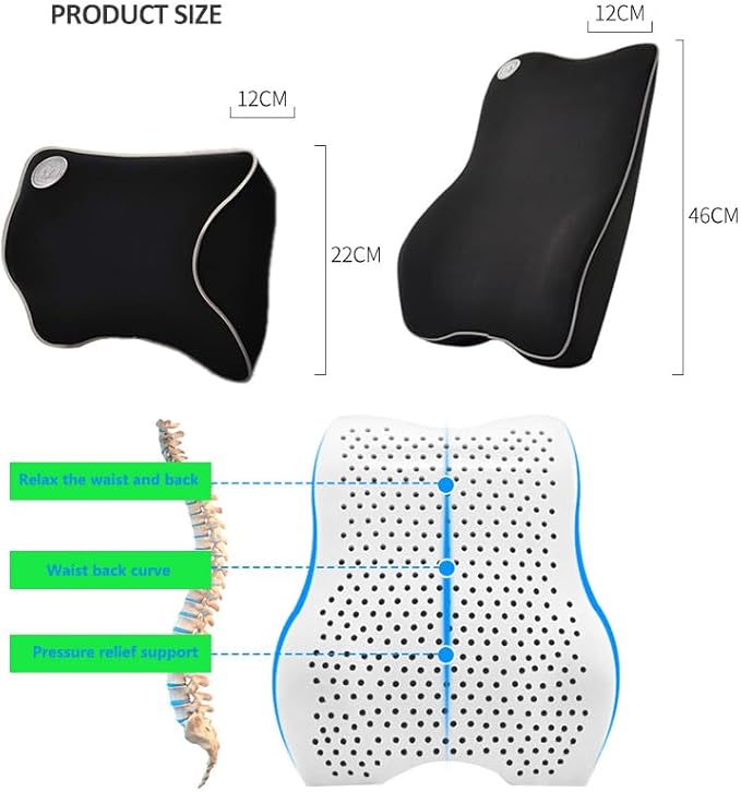 【人間工学設計】科学的な人間の頚椎湾曲設計、背骨の湾曲を保ち、車の腰枕は背中と背骨/尾椎を支えることができ、特に腰痛患者に適しています。