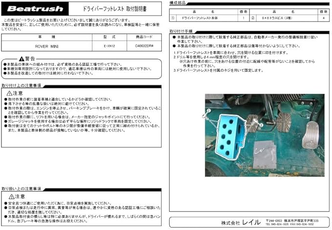 Beatrush(ビートラッシュ) ドライバーフットレスト(ブラック) ローバー ミニ [XN12] ※右ハンドル運転席用 【C40032DRK】ローバー ミニ [XN12] ※右ハンドル運転席用