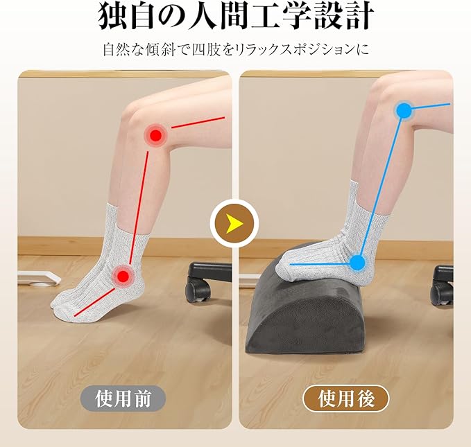 【適度なサポート力、復元率98%】このフットレストは、高品質な高反発スポンジコアと取り外し可能な洗える水晶ベルベットカバーを採用。✓足のカーブに完璧にフィット ✓型崩れしない耐久性 ✓長時間使用でも快適なサポートを提供。オフィスワーク、ゲーム、受験勉強など、あらゆる座り仕事の必需品です。