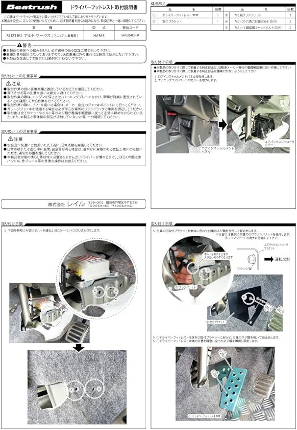 Beatrush(ビートラッシュ) ドライバーフットレスト アルミ製 [ゴールド] スズキ アルト ワークス HA36S ※5MT車用 【S48504DRG】アルト ワークス HA36S ※5MT車用