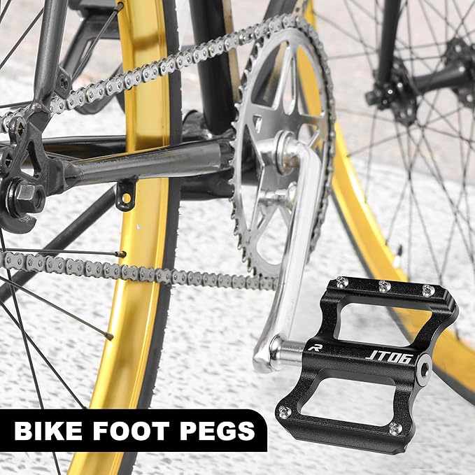 [素材] 自転車リアフットペグはアルミ合金製です。ペダルの中央部分に特別なデザインがあり、滑り止め効果があり、足の滑りやすさを防ぎ、ペダル上でより安定したグリップが可能です。