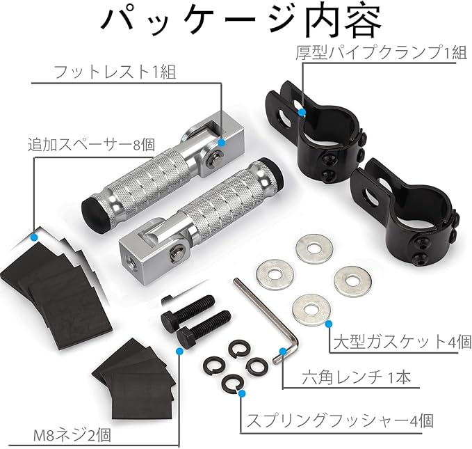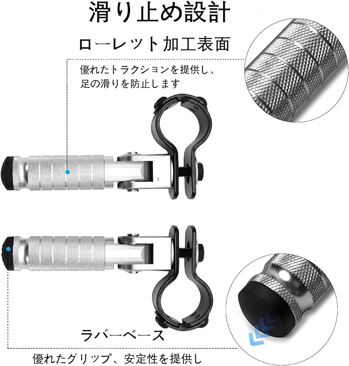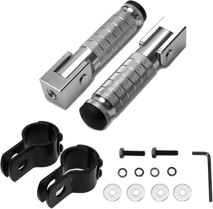 【取り付け簡単】オリジナルのフットペグと直接交換できます、取り付けブラケットを固定するだけ。ロスレスインストール。パッケージ内容: フットレスト1組、厚型パイプクランプ1組、取り付けキット1個。当社のフットペグで快適かつ安全に走行してください。