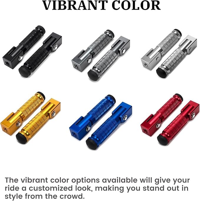 【CNC アルミニウム合金素材】このバイク用フットレストはアルミニウム合金製ですCNC 加工、陽極酸化処理された表面。酸化や傷を防ぎ、耐腐食性と耐摩耗性に優れ、変形や損傷が起こりにくい。これらのスタイリッシュなバイク用フットレストで、あなたのユニークな個性を表現し、バイクの運転にちょっとした楽しさを加えましょう。
