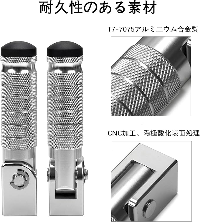 RACEAST M8 オートバイ フットレスト 折りたたみフットステップペグ 左右セット 汎用 CNC滑り止め フロント フットペグ リア フットペグ 90度 折り畳み式 助手席ペダルサポート 適合車種 自転車、スクーター、バイク (銀)