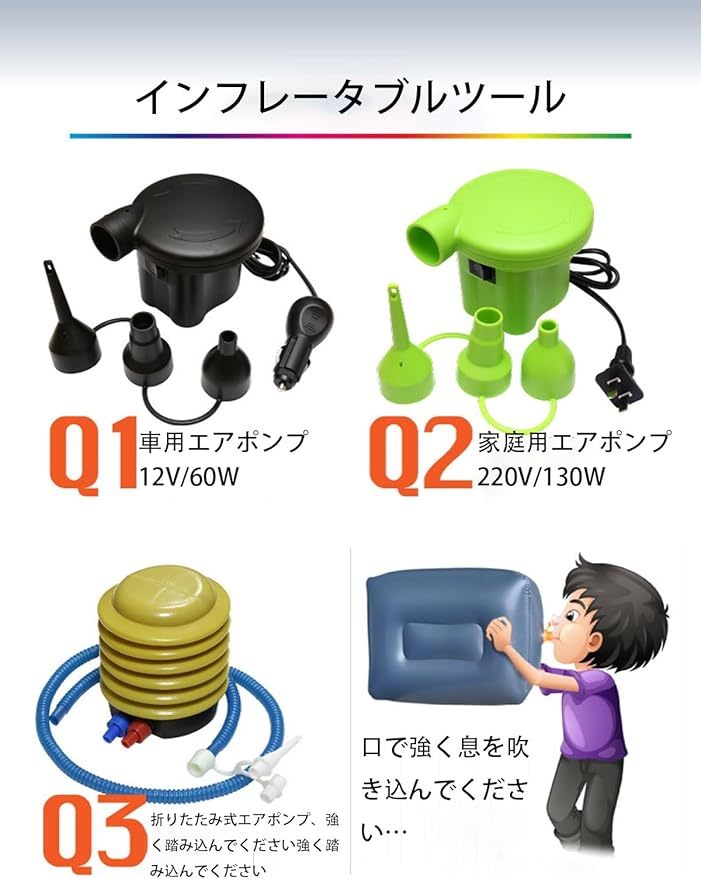 エアー式なので簡単な微調整で固さもお好みのままです。ボンプを不要に女の子でも簡単にフットレストに空気を吹き込むことができ、ボンプを携帯必要がないので、空間を節約します。