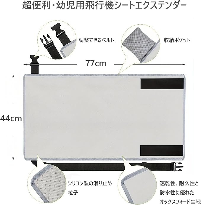 【注意事項】ご購入する前に座席のサイズとご利用のJR鉄道、航空会社のご使用・設置が許可しているかどうかをご確認ください。 また、飛行機が安全高度に達したから、子供用飛行機の座席の専用エクステンダーを取り付けてお願いします。 更に、窓側の席やシートトレイがある中央列の座席ではご利用いただけますが、通路側の席や非常口列の席ではご利用いただけません。 後は商品を受け取った際に全部新品のため、匂いが多少ある場合がありますので、ご使用前に風通しの良い場所で乾燥して、または洗うことをお勧めします。